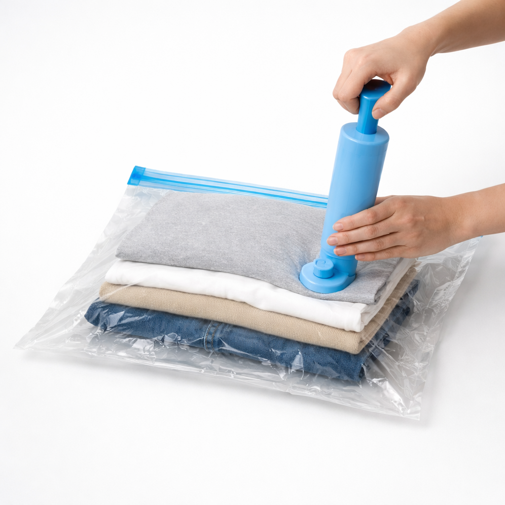 Bolsas de vacío Spazio® con bomba manual para viaje y organización.